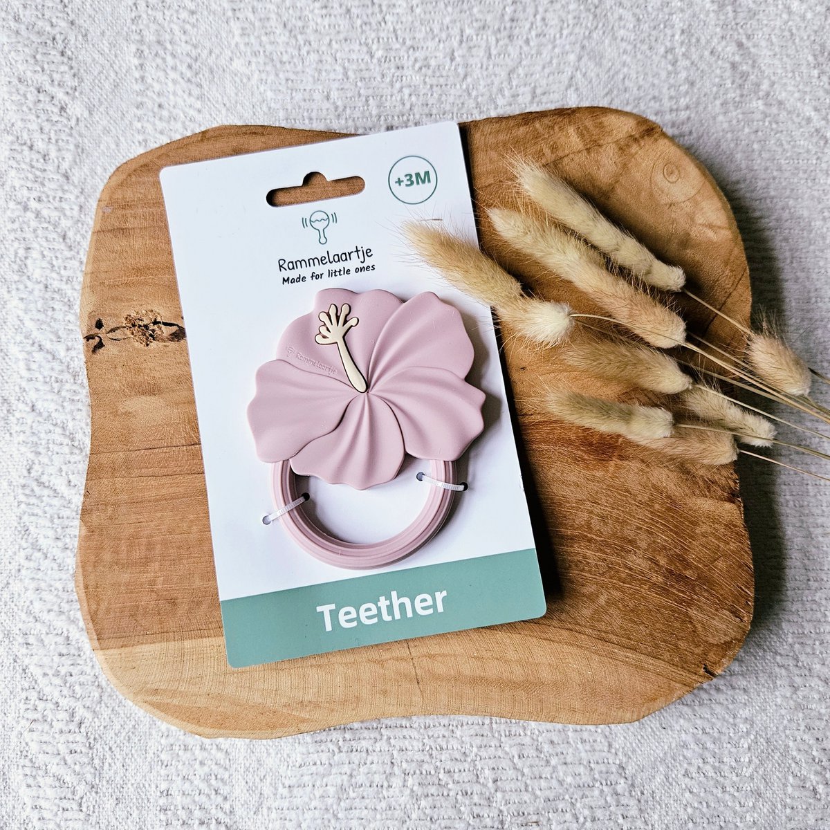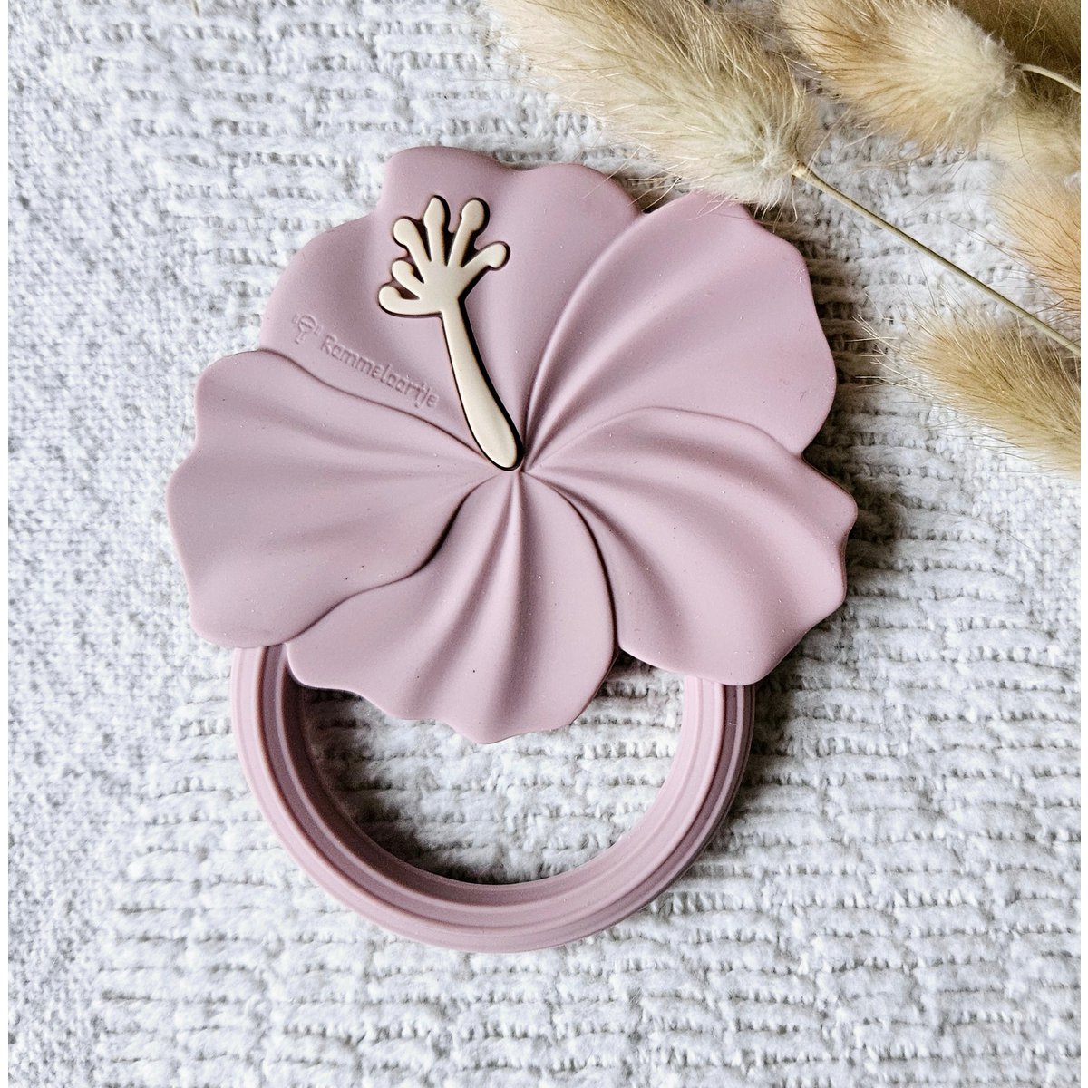Siliconen Bijtring Hibiscus - Zachtroze Deze bijtring is gemaakt van hoogwaardige siliconen, dat BPA-vrij, niet-giftig en duurzaam is. De bijtring heeft een zachte en flexibele textuur, die de pijn van doorkomende tandjes verlicht en het tandvlees masseert. De bijtring heeft ook een mooie hibiscus vorm, die de aandacht van uw baby trekt en de zintuigen stimuleert. Het is gemakkelijk vast te houden, te reinigen en te steriliseren. U kunt hem ook in de koelkast leggen voor extra verkoeling.